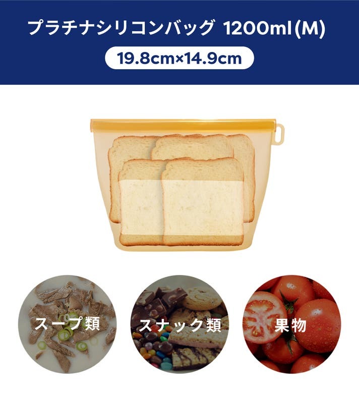 食品衛生に適したグレードであることから、日常的に繰り返し使える保存袋に最適な素材と言えます。 このプラチナシリコン素材のおかげで、DeliOne は「買い足すことなく、長く使 い続けられる」ことができ、毎日の調理や保存をサポートする、キッチンに欠かせない相棒になってくれます。